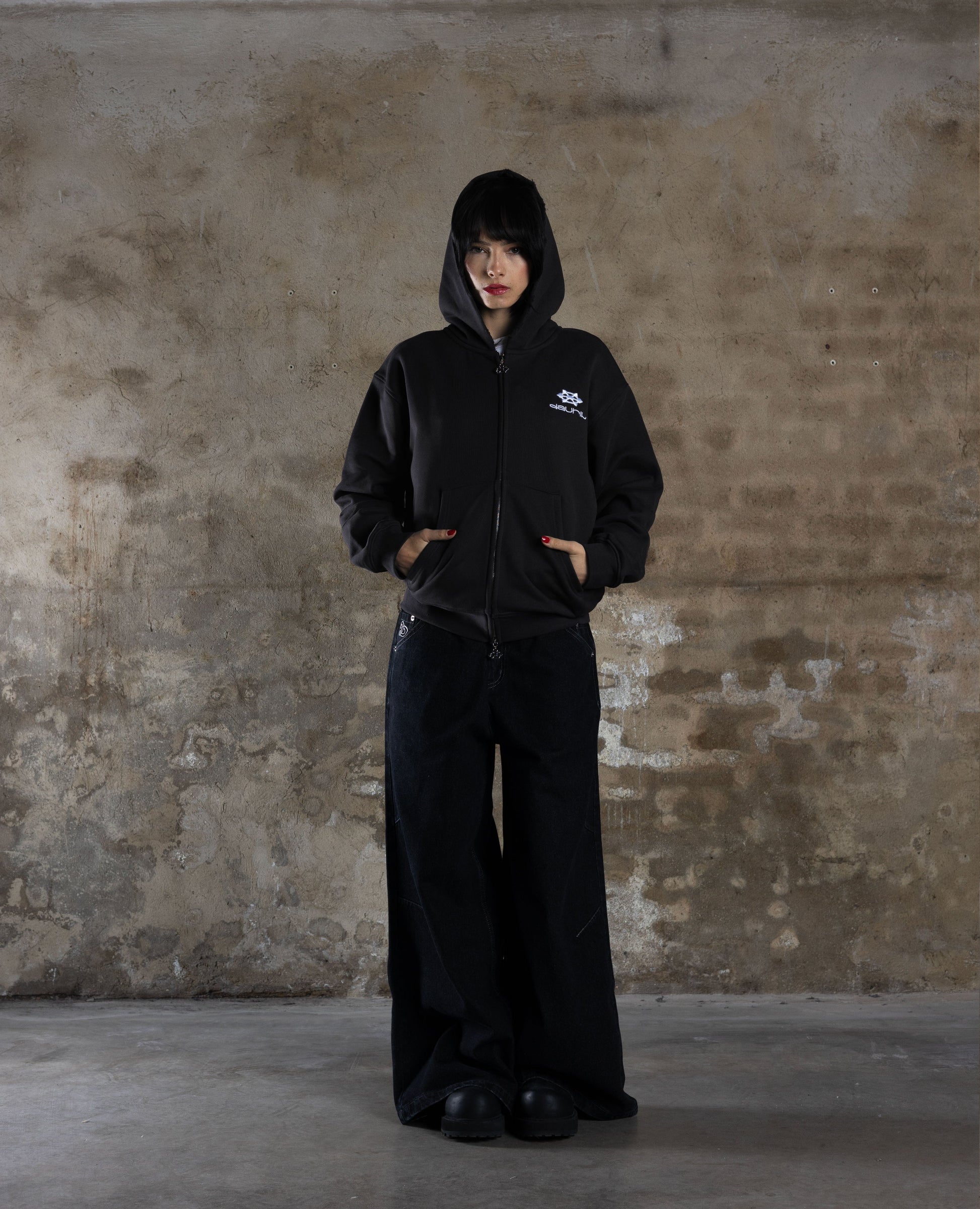 DARK GREY DISTRESSED ZIP