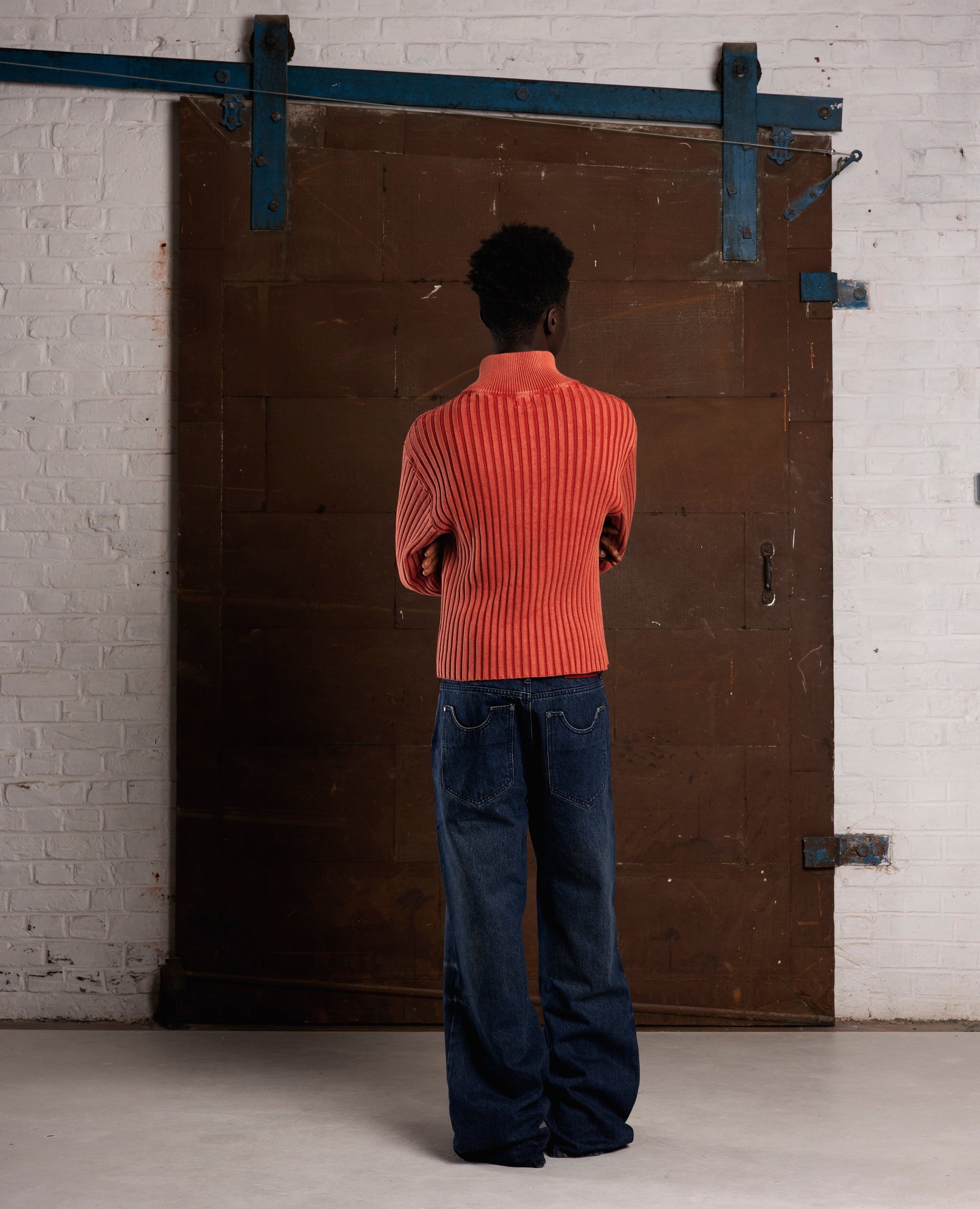 RED FITTED RIBBED KNITWEAR